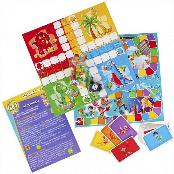 Особенности Возрастная адресованность: 3-6 лет. Количество игроков: 2-4. Время партии: около 15 минут. В комплекте: игровые поля (двухсторонние): 2 шт.; карточки: 25 шт.; фишки: 27 шт; кубик: 1 шт.; правила игры. ?Код товара×000.0001.000.548 Возрастная категория 3+ Материал картон Гарантия 14 дней