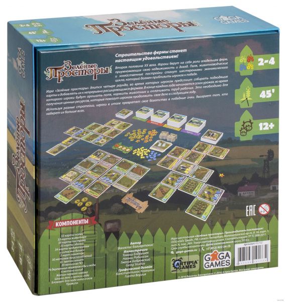 Особенности Сеттинг: Сельское хозяйство; Название в оригинале: Fields of Green ?Код товара×000.000214.996 Возрастная категория 12+ Количество элементов 366 Количество игроков 2-4 Материал Картон Страна бренда Россия Страна производитель Россия Гарантия 14 месяцев