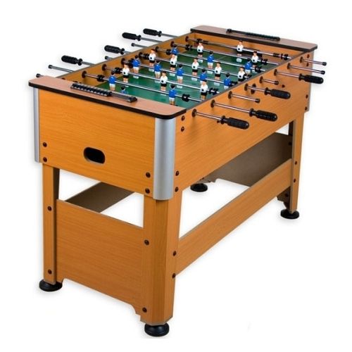 Особенности Резиновые наконечники. Защищенные острые края. Резиновые ручки предотвращают руки от соскальзывания. Ручные счетчики для обеих команд. Регулируемые ножки. Мяч диаметром 31 мм. Кронштейны между ног. Толстые регулируемые ножки. Поперечная металлическая поддержка ?Код товара×000.000032.685 Игра Футбол Размер 128х101х87 см Материал МДФ ламинированный Вес, кг 27 Страна производитель Китай Гарантия 1 месяц