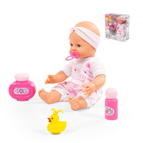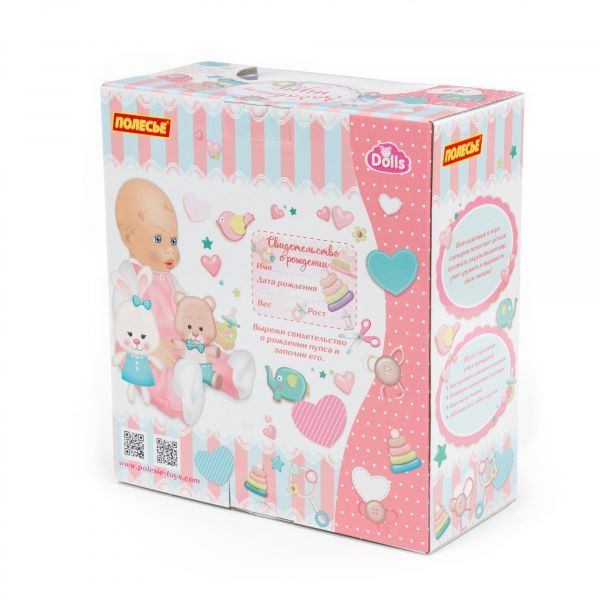 Особенности с соской + набор для купания (3 элемента) (в коробке) ?Код товара×000.000297.460 Возрастная категория 3+ Размер в упаковке, см 29x13,5x32 Высота, см 35 Материал Пластик Страна бренда Беларусь Страна производитель Беларусь Гарантия 14 дней