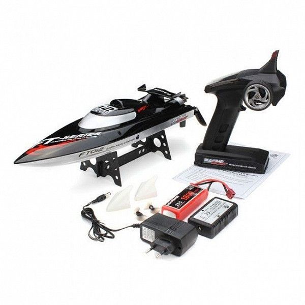 Особенности Входит в комплект: Катер FT012 с бесколлекторным электромотором, Аппаратура управления 2.4GHz, Аккумулятор Li-Po 1800 mAh 11,1V, Зарядное устройство от сети 220В, Подставка под катер, Бампер, Запасной гребной винт, Инструкция. Приобретается отдельно: 6 батареек типа АА для пульта управления ?Код товара×000.0001.108.534 Максимальная скорость, км/ч 45 Емкость аккумулятора, мА/ч 1800 Время работы аккумулятора, час 15 мин Дальность управления, м 100 Тип двигателя Бесколлекторный Частота управления, ГГЦ 2,4 Время зарядки, мин 180 Тип аккумулятора Li-Po Материал пластик