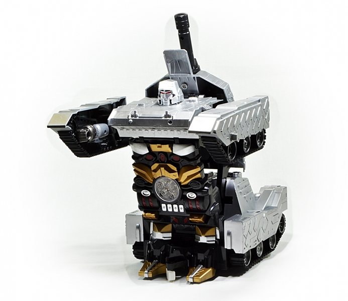 Стреляет присосками. Робот имеет световые и звуковые эффекты. Частота передатчика 2.4G. Время зарядки около 60 минут.Время игры около 30 минут. Радиус действия пульта управления до 15 м. Аккумулятор 4.8V 700mAh. Функции движения вперед, назад, вправо, влево, световые, звуковые эффекты и трасформация в или робота.