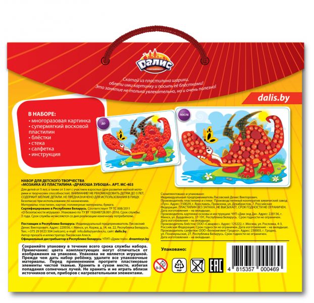 Мозаика из пластилина Dalis Дракоша Зубоша МС-403