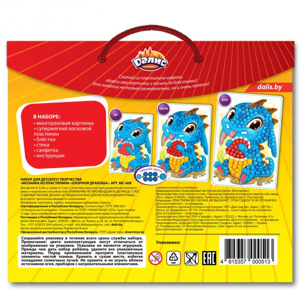 Мозаика из пластилина Dalis Озорной дракоша МС-408
