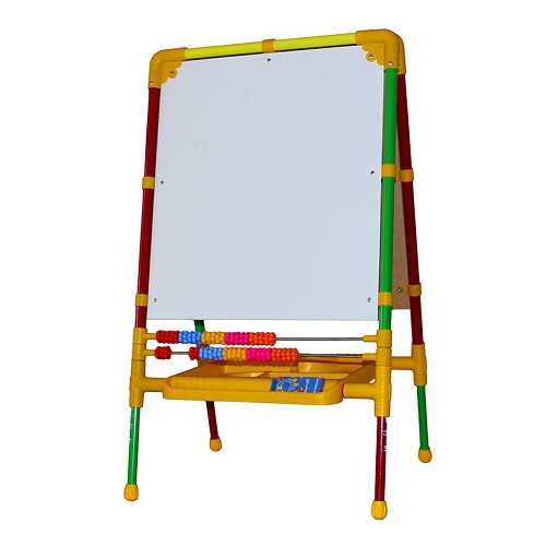 В комплекте: мольберт (рабочая поверхность 53 х 47 см), магнитная азбука, мелки, мозаика, маркеры (3 цвета), губка для стирания маркера.