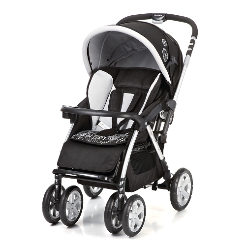 Алюминиевая рама. Поворотные передние колеса с возможностью фиксации 3 положения наклона спинки. Столик с подставкой для бутылочки. Складывание одной рукой. Регулируемая подножка. Съемный мягкий вкладыш. Устойчивость в сложенном виде. Система ремней безопасности. Багажная корзина. В комплекте: полог, дождевик, москитная сетка, матрасик