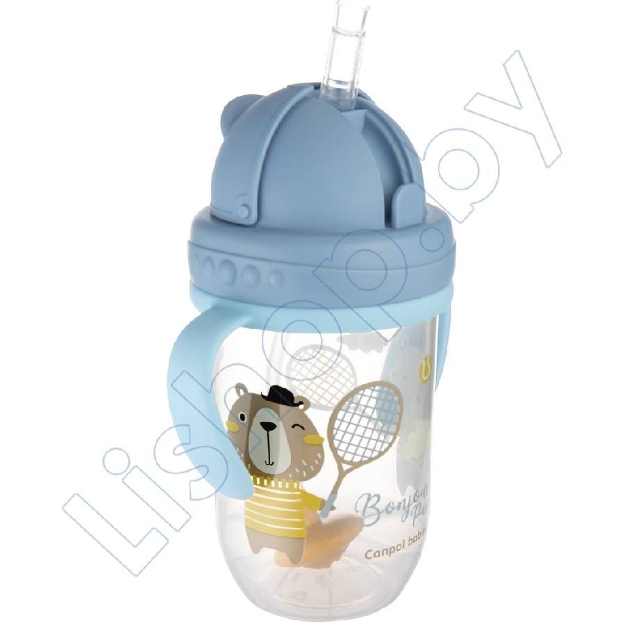 Поильник непроливающий Canpol babies Bonjur Paris с трубочкой и утяжелителем 270 мл., 6 мес. + (56/607_blu)