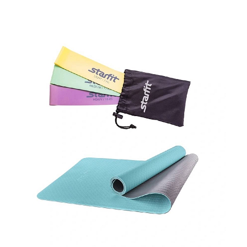 Коврик для йоги STARFIT FM-201 TPE 173x61x0,6 см, мятный/серый 1/12